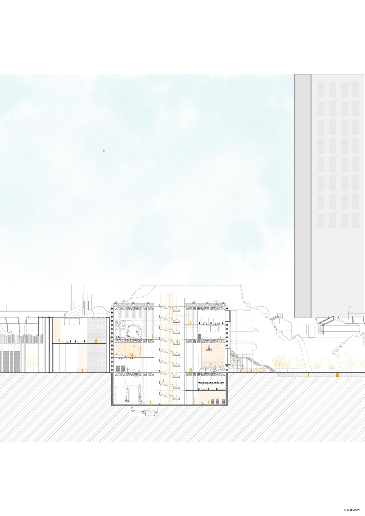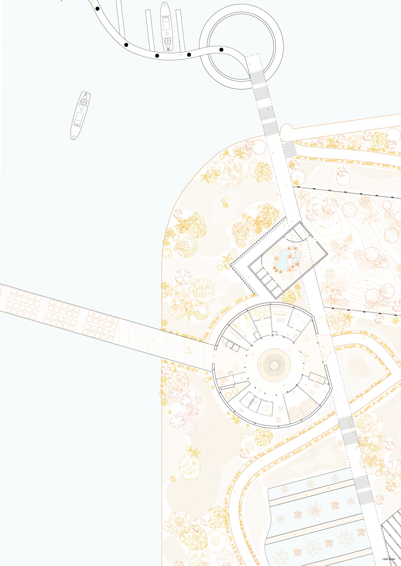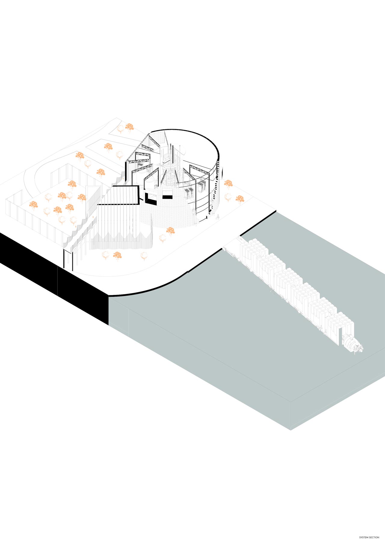 Users are given an opportunity to visit the university as their learning requires or to live on the site to understand long term effects of the filtration process. Each island in an archipelago site will research and teach its own process, from oyster farms to mangrove and reed farms students will have a practical and hands on approach on how to restore our forgotten water. The public is invited to the parent site to demolish the wall and to interact and engage through a built corridor acting as an artificial terrain, cutting through the site.
